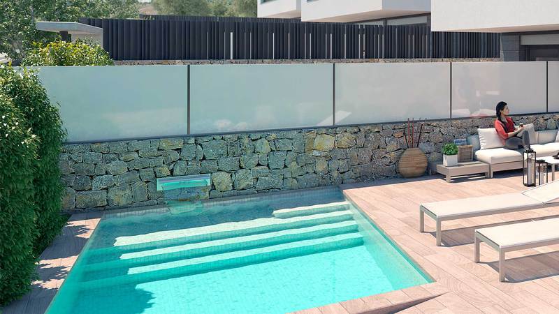 • Küche, Wohnraum, Essraum, Pool, Chill out área, Terrassen, Parking, Fussbodenheizung, Klimaanlage, Gas Zentralheizung, elektrisches Tor, Alarm Anlage