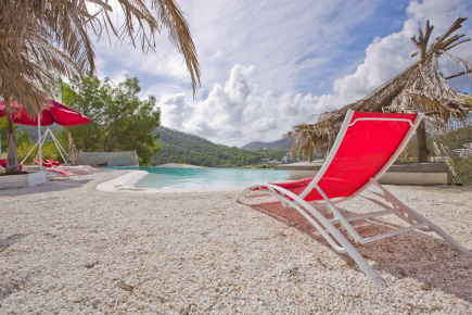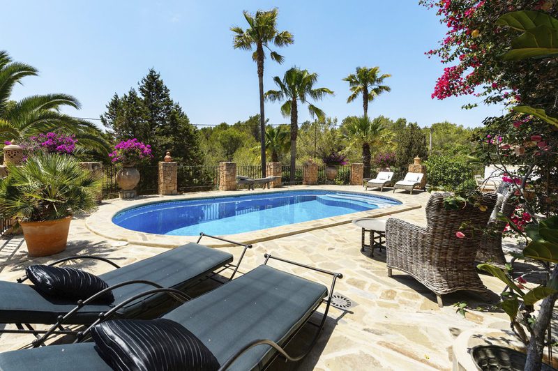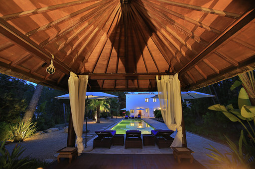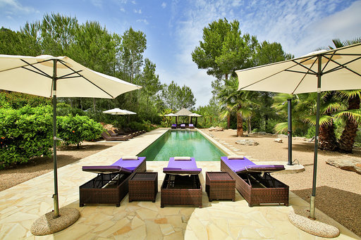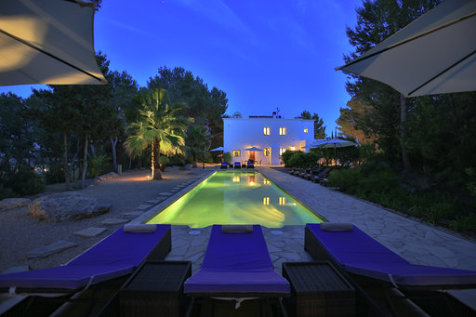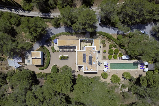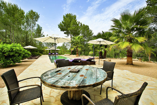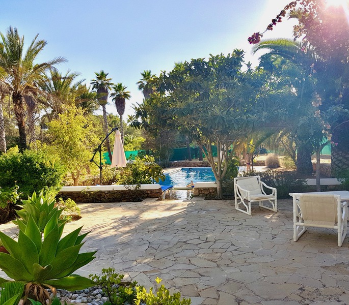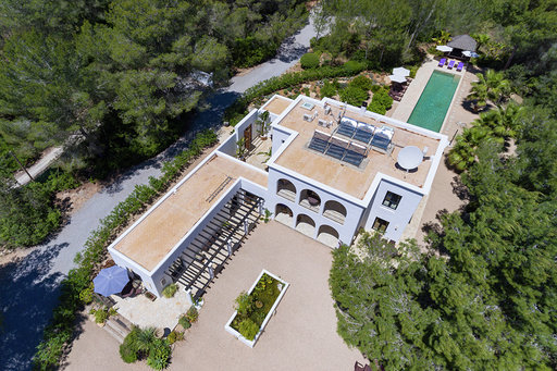 Es befindet sich in absoluter Privatsphäre ganz in der Nähe des schönen und trendigen Dorfes Santa Gertrudis, zwischen San Juan und Ibiza-Stadt.