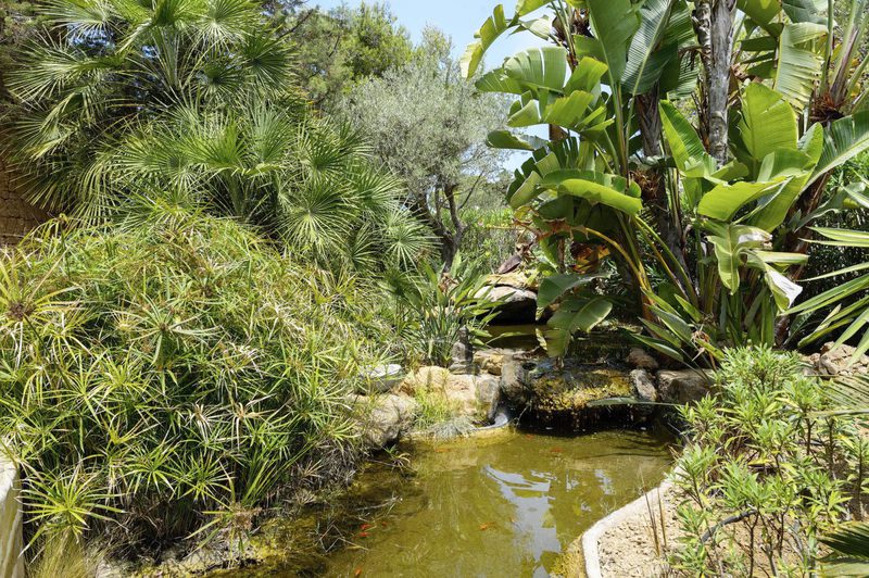 Mediterrane Gärten, sehr gepflegt, mit Palmen etc. Am Eingang des Hauses befindet sich auch ein wunderschöner asiatischer Teich.