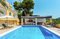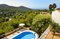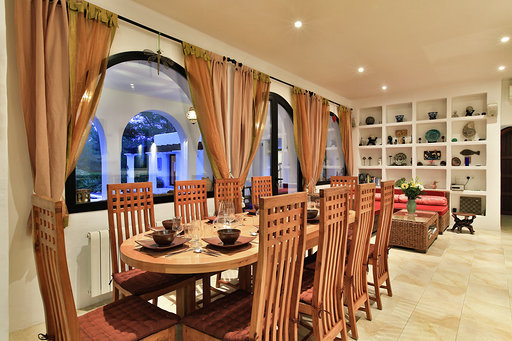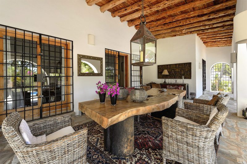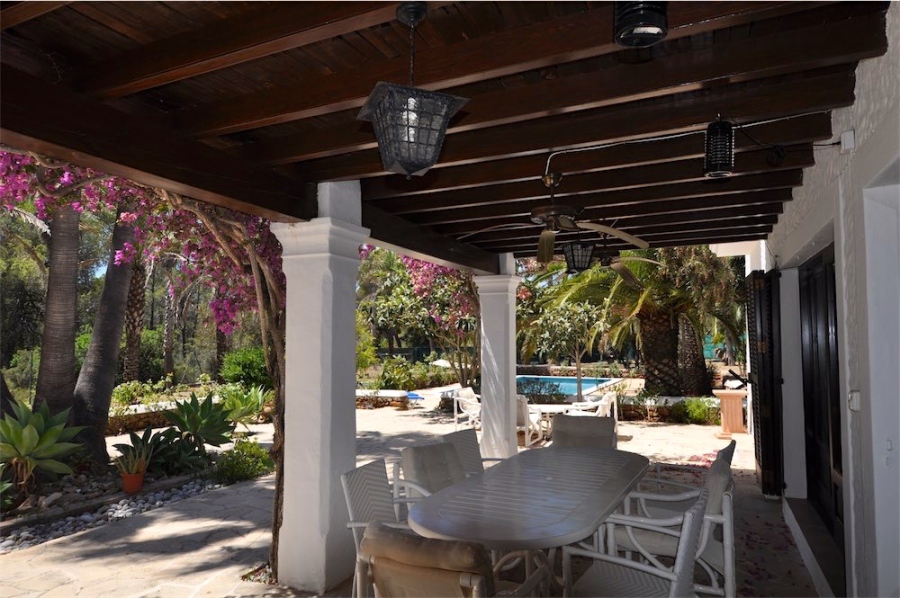 Das Anwesen ist ein Haus im Finca-Stil mit vielen traditionellen Merkmalen sowie einer überdachten Veranda mit Blick auf den Pool.