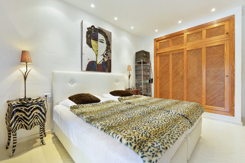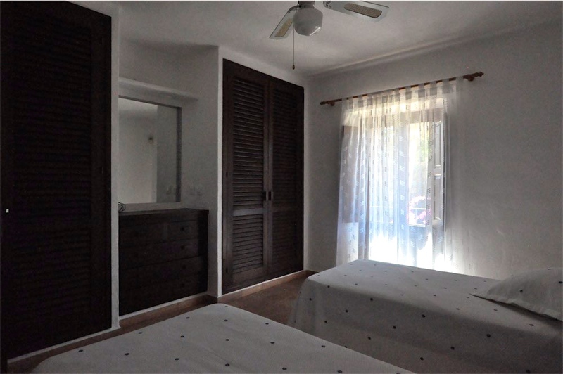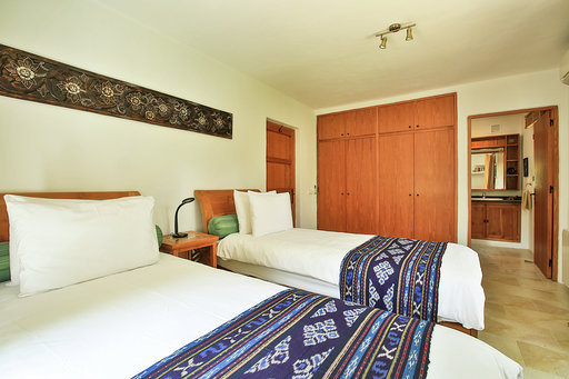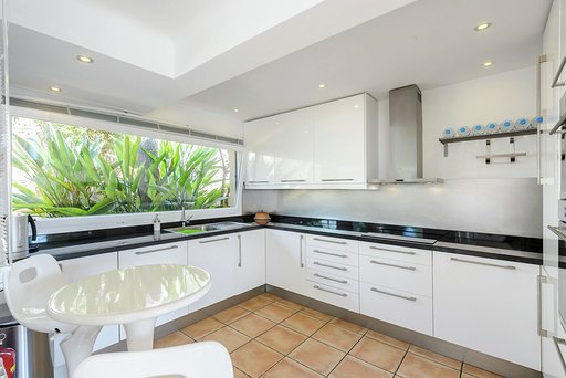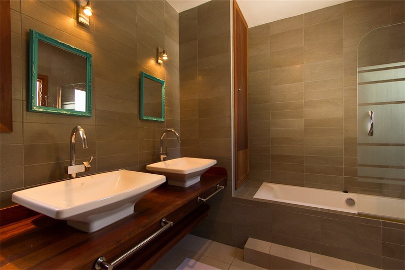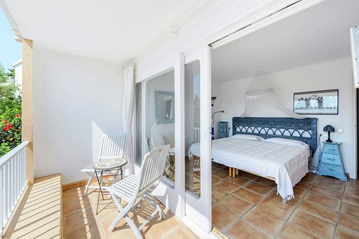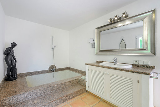 Die 2 Schlafzimmer im Erdgeschoss verfügen über grosse Bäder, eines davon en Suite, und haben Schiebetüren mit eigenem Zugang zum Poolbereich und eigenen Terrassen. Die dritte Schlafzimmersuite ist unabhängig und befindet sich unter der Poolterrasse und hat Zugang zum Pool.