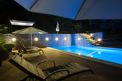 Der Pool ist sehr privat und bietet Platz für Sonnenliegen. Es gibt einen Grillplatz neben dem Pool und auch eine Sauna.