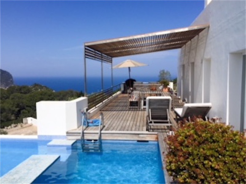 Es hat auch eine große Terrasse mit fantastischem Blick auf das Meer und die Stadt Ibiza sowie eine überdachte Terrasse.