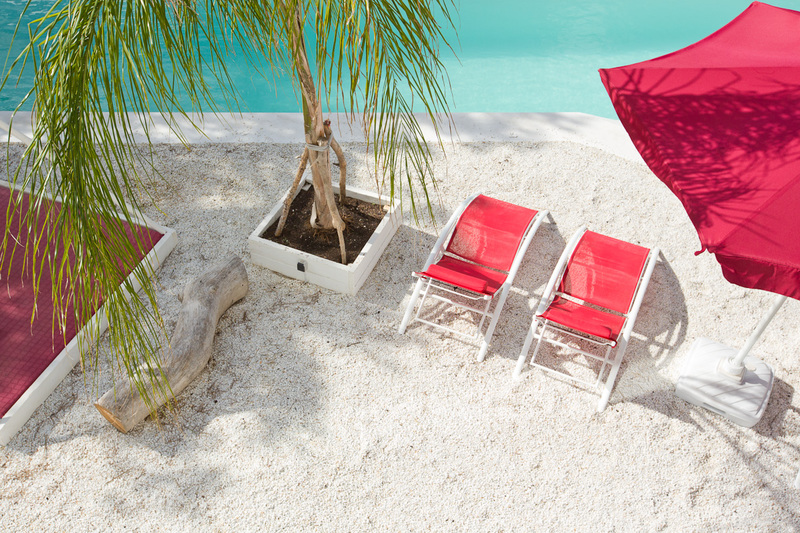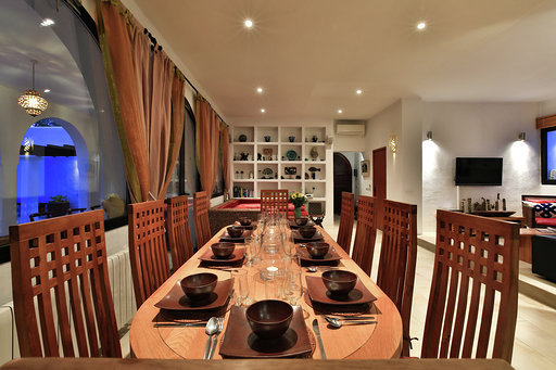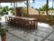 Es gibt einen großen Sitzbereich um draußen essen zu können sowie der große Pool mit Terrassen.
