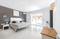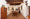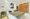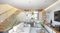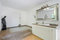 Hat eine große Küche mit Wohn- und Esszimmer.