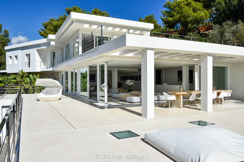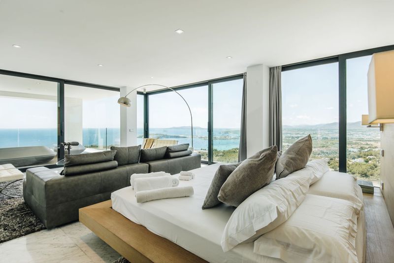 Mit einem traumhaftem Blick auf Ibiza, beste Lage und wunderschönem Design bietet diese moderne Villa die perfekte Kombination